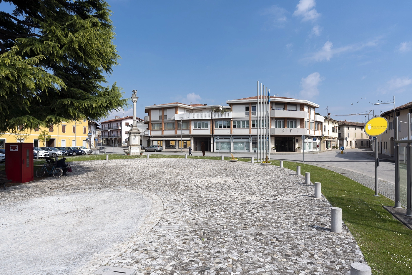 La Chiesa di San Odorico, documentata dall’XI secolo, conserva sulla facciata un affresco trecentesco di San Cristoforo. All’interno, quattro dipinti settecenteschi degli Evangelisti sono attribuiti a Nicola Grassi. Poco distante, Villa Marangoni Masolini fu un tempo monastero benedettino, legato alla gestione dell’abbazia e del guado sul Tagliamento.